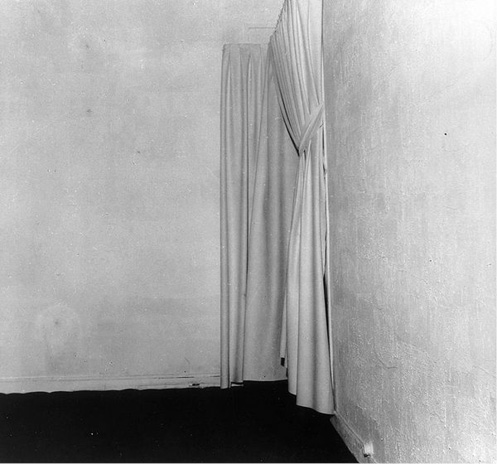 La présence du vide oriental se trouve dans sa nature potentielle, comme une toile blanche d’où sortent les idées, le vide est plein, car il peut être rempli et réalisé. Ainsi si en Occident le vide n’a pas de valeur, en Orient il est rempli de possibilités. C’est cette vision que tente de faire expérimenter Yves Klein en 1958 dans son exposition Spécialisation de la sensibilité à l’état matière première en sensibilité picturale stabilisée (Fig. 4) qui ne présente qu’une galerie d’art, vide et peinte en blanc.