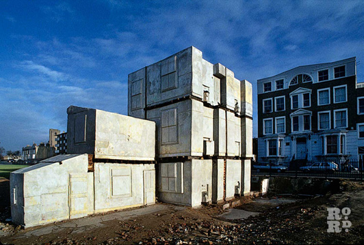 Aujourd’hui, l’art conceptuel questionne nos rapports à l’espace et au vide. Rachel Whiteread propose un nouveau regard sur le réel avec l’empreinte de l’inexistant. House (Fig. 5), une sculpture monumentale de l’espace intérieur d’une maison vide, transforme notre perspective du monde. Ces moulages donnent à voir des négatifs, l’inexistant, alors que ce qui était a disparu.