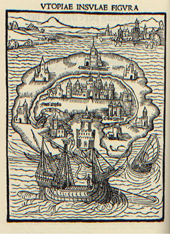 Le terme d’utopie naît avec le roman de Thomas More, « Utopia » en 1516. More utilise la forme d’un récit d’aventure fictif pour décrire l’histoire de l’île d’Utopie, sa constitution, toutes les mœurs et lois qui organisent sa société, les croyances et son économie.