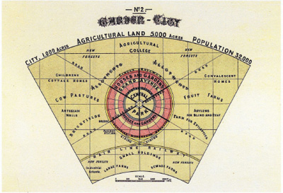Les cités jardins de Ebenezer Howard, dont les théories sont publiées au début de XXe siècle, sont considérées comme un des premiers vrais modèles d’urbanisme. C’est une évolution de plans comme ceux de la ville de Palma Nova près de Venise, élaborés dans un but défensif. Dans ses plans Howard prend en compte tous les aspects : financiers, industriels, commerciaux, les transports, le logement, les loisirs, l’enseignement, etc. On retrouve dans son travail le modèle de ville centrée, un ensemble absolument géométrique qui induit l’utilisation de plans au graphisme rationnel et dénué de toute sensibilité (vue de haut, symétrique et géométrique).