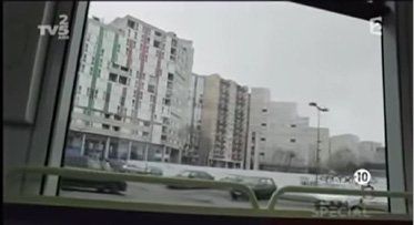 Enfin, la vision dystopique est souvent une vision amplifiée de la réalité. Par exemple, la Villeneuve de Grenoble9, qui émerge dans les années 70 et dont le « quartier-ville » avait un but social, est d’abord une réussite, un cadre de vie agréable pour les habitants. Pourtant depuis les années 2000, le cadre de vie se dégrade et sa réputation baisse jusqu’à devenir une des pires de Grenoble. Les médias s’emparent alors de l’histoire de ce quartier pour la remodeler et produire des reportages/récits (souvent exagérés et dramatisés 10) critiques de ces utopies de grands ensembles. On en garde maintenant dans nos imaginaires, une représentation distordue, sale, abimée, à cause des cadrages mettant en avant cette structure dégradée, des images filmées de nuit ou sous un ciel gris (figure 12). Ce sont les mêmes procédés que l’on retrouve dans les récits graphiques dystopiques (figure 13) comme « 1984 » de Xavier Coste (2021) ou encore « Citéruine » (figure 14) de Jérôme Dubois (2020) qui à leur tour représentent des mondes urbains oppressant par leur monochromie, insensibilité et déformation du décor, de la ville.