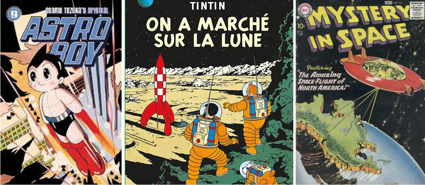 Dans les années 50-60, bien que l’âge d’or de la science-fiction, surtout aux États-Unis, soit sur son déclin, le rêve et l’optimisme apportés par la conquête spatiale n’a pas encore complètement terni. On retrouve encore dans les différentes formes de narration graphique (principalement comics, manga, mais aussi