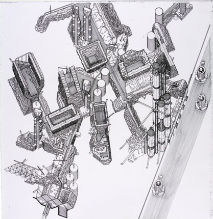 Dans son ouvrage « Megastructure, Urban futures of a recent past », Reyner Banham définit la mégastructure et mentionne « Ragnitz » comme exemple probant de cette définition : « De grande taille, construite d’unités modulaires capables d’extension grande, voire illimitée, un réseau structurel à l’intérieur duquel de plus petites unités structurelles, des pièces, des maisons, des petits bâtiments peuvent être construites ou même pluguées ou clippées après avoir été construites ailleurs. Une trame structurelle prévue pour atteindre une durée de vie bien plus longue que les petits éléments qu’elle peut supporter. ». Ces mégastructures apportent à leur tour une imagerie architecturale novatrice, faite d’enchevêtrements, de projections qui nous font perdre la notion d’échelle.