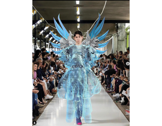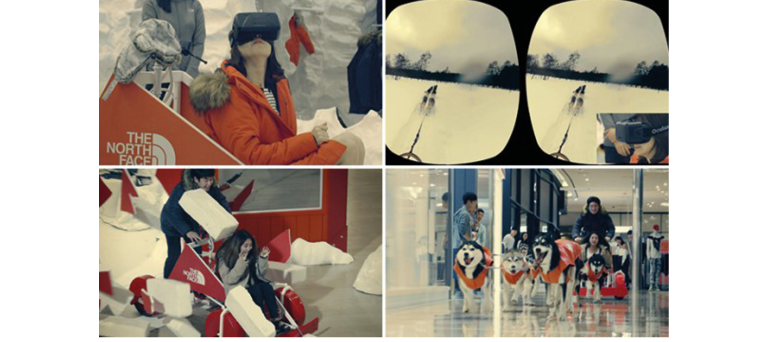Lorsqu’une chose exerce des changements sur toute une population, il est normal que ces modifications s’opèrent dans plusieurs domaines qui influent eux aussi sur cette même population. On retrouve par exemple des outils dits « immersifs » dans les secteur de la mode, comme l’utilisation de la réalité augmentée pour créer ou ajouter de nouvelles pièces à une tenue, chose que le créateur Andrea Albrizio a su mettre à profit dans sont travail (Figure 1) ; ou dans le marketing, avec les campagnes publicitaires de la marque de vêtements The North Face qui utilisent des casques de réalitée virtuelle et des vidéo 360° (Figure 2) ; pour ne citer qu’eux. Il est alors normal que l’art s’accommode aussi de ces nouveautés. Comme expliqué dans un numéro de philosophie magazine6, l’art numérique « peut simplement être considéré comme une évolution naturelle de l’art contemporain » ; car les pratiques artistiques sont vouées à expérimenter, s’approprier et réinventer ce qui nous entoure. Cette nouvelle manière d’exposer et observer des images « suppose une utilisation tout à fait singulière de la technologie » : installations vidéo, projections, environnements connectés et installations audiovisuelles hybridées ou non avec des performances, sans oublier les NFT7 désormais intégralement dématérialisés. L’art et le digital forment alors un nouveau terrain de jeu et de création pour les artistes.
