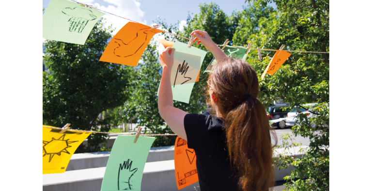 Intégrer la participation du spectateur au sein du processus de création peut permettre de communiquer d’une nouvelle manière par le biais de l’art. L’échange ne se fait plus a travers d’un résultat mais en direct ; comme lors de l’atelier initié par Fanny Laulaigne11 (Figure 8).