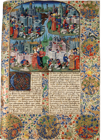 Le livre tel que nous le connaissons aujourd’hui vient du codex, qui, au Ve siècle, a remplacé les rouleaux (volumen). Il était tout d’abord un objet utilisé par les moines et les religieux3. À mesure que les siècles passèrent, le livre évolua pour devenir un objet de plus en plus raffiné, particulièrement au Moyen Âge, où la fabrication des ouvrages était un travail artisanal exigeant. La production, exclusivement manuscrite, faisait de chaque livre une pièce unique, réservée à une élite lettrée. En combinant calligraphie, enluminures (Figure 2) et reliure, chaque manuscrit devenait une œuvre d’art, ce qui renforce l’image du livre comme réceptacle du savoir et comme objet de luxe. Cette vision précieuse du livre marquera toute la période médiévale.