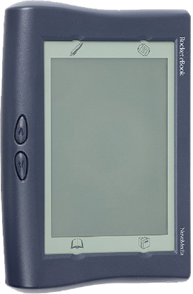 La fin du XXe siècle inaugure une nouvelle transformation avec l’introduction du livre numérique. En 1998, le Rocket eBook (Figure 4) initie une ère de lecture dématérialisée, rendant possible un accès immédiat et portable à une vaste bibliothèque de textes. Cependant, malgré leur praticité, les liseuses numériques échouent à reproduire l’expérience sensorielle et émotionnelle liée au livre imprimé. Le toucher du papier, le bruit des pages tournées et l’odeur si caractéristique de l’encre et du papier sont des sensations inimitables qui maintiennent le livre physique dans une dimension affective8.