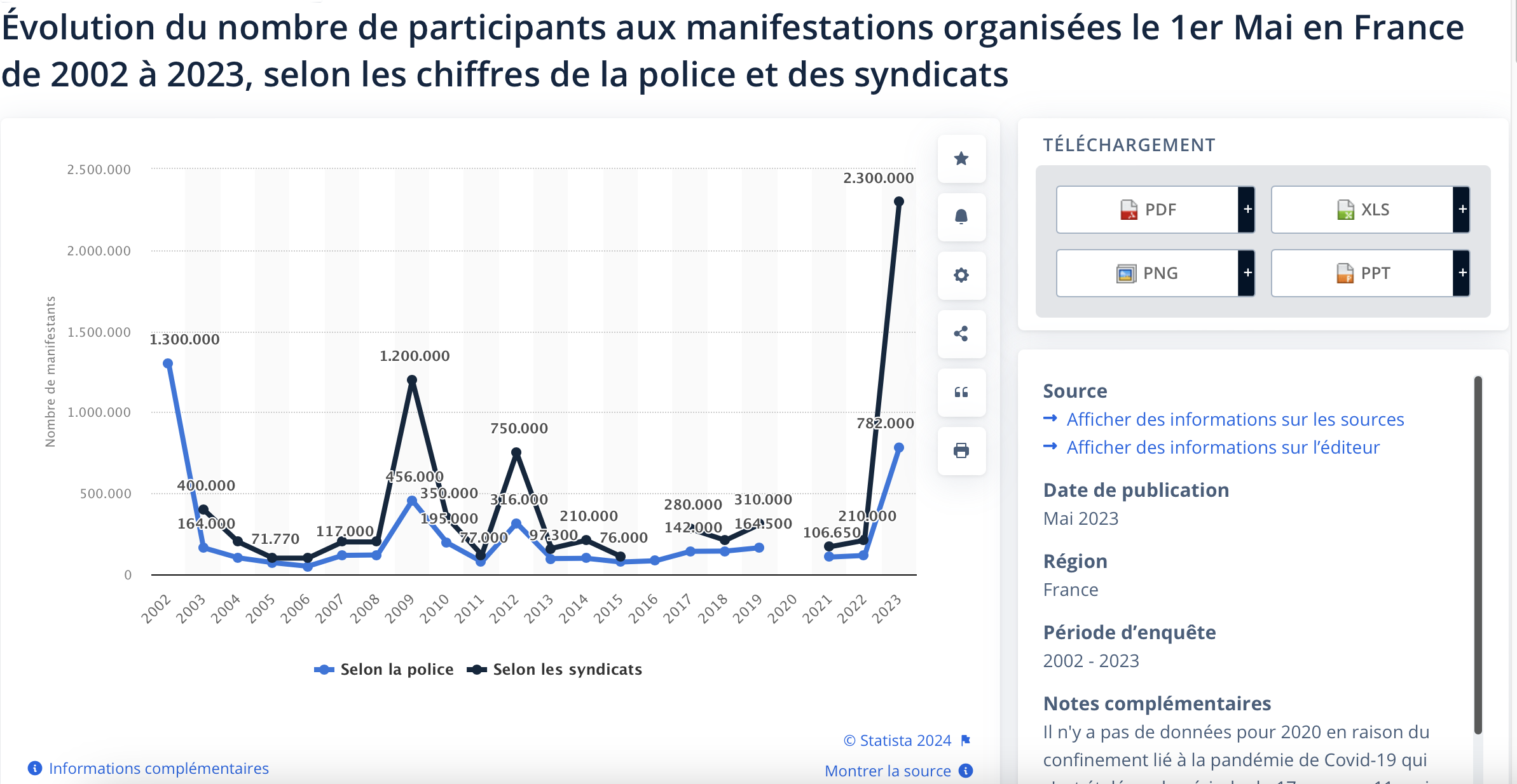 https://fr.statista.com/statistiques/1381616/evolution-nombre-manifestants-premier-mai/